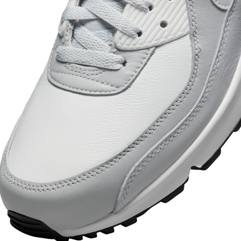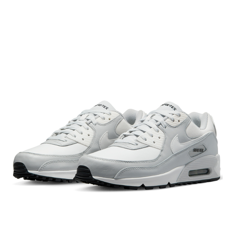 Nike AM 90 GTX - это распределенная между внешней кожей и внутренним текстилем мембрана GORE-TEX, которая оставит ваши ноги сухими в мокрую погоду. Яркая коллекция серых оттенков смешивается с кожей цвета «Summit White» и логотипом Swoosh для создания легкого оттенка. Монохромная эстетика дополняется кожаными накладками и брызговиками цвета «Photon Dust», а под ногами — смесью белого «Grey Fog» и черного цвета. Ткани GORE-TEX расположены и в задней половине модели, покрывая воротник и язычок, на которой нанесен текстильный брендинг. В попытке разрушить устоявшуюся цветовую палитру оттенков серого, фирменная надпись «AIR» сзади и протекторы выполнены в изумрудно-зеленом оттенке, подчеркивающем погодостойкий дизайн.