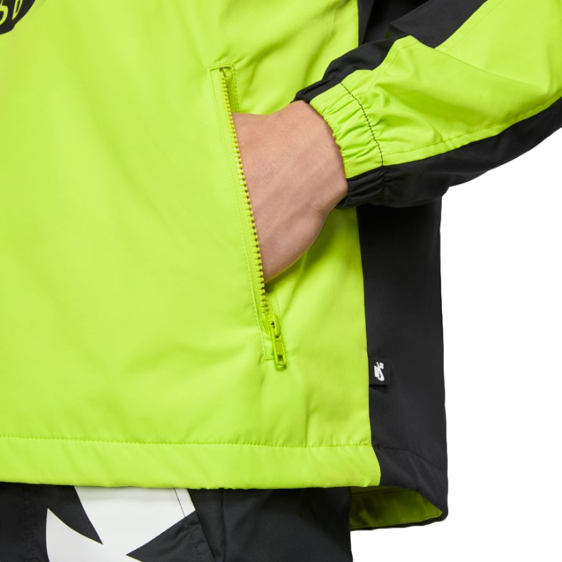 Катайся весь день — даже в дождливую погоду. Анорак Nike SB — это легкая водоотталкивающая модель с регулируемой посадкой и боковыми карманами на молнии, в которых все ваши вещи будут надежно защищены от намокания.