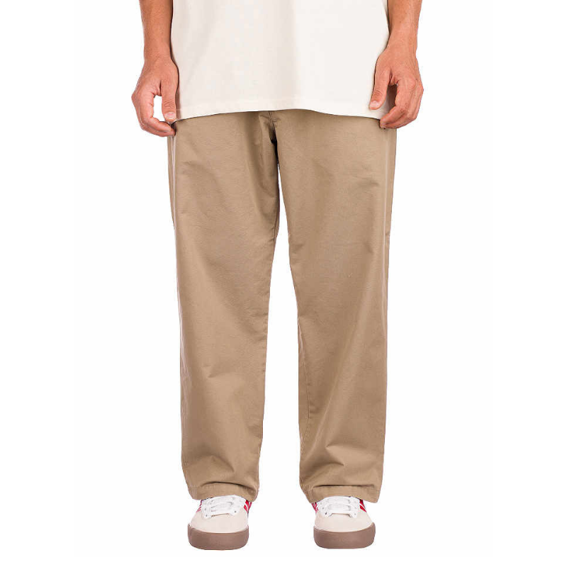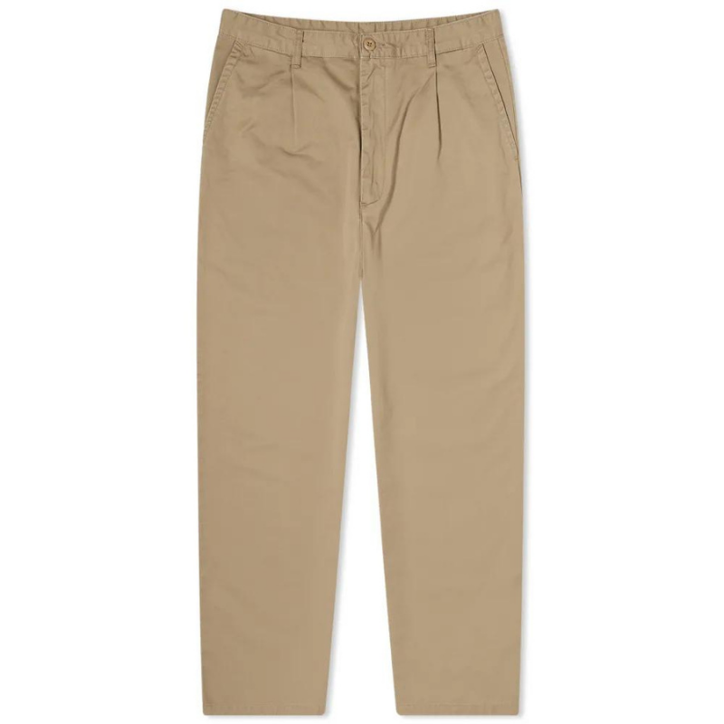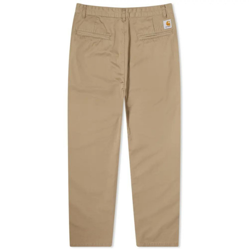Брюки Alder Pant сшиты из 8 унций 100% хлопкового твила "lenexa", который был подвергнут дополнительной обработке stone washed, чтобы сделать ткань более мягкой как на ощупь, так и по цвету. Модель имеет складку спереди, прострочку в местах наибольшего напряжения и небольшой тканый лейбл Carhartt WIP на задней части.